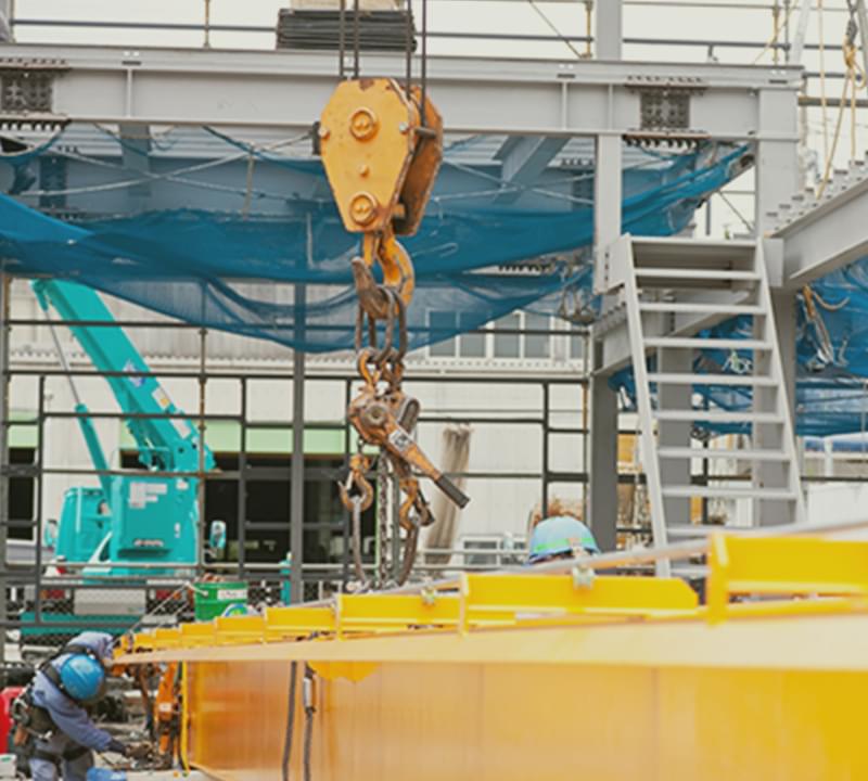 工場のドアノブの交換といった小規模な営繕から、機械基礎や屋根の修理といった大規模な営繕など、工場に関するあらゆる営繕を行っています。長年の営繕に関するノウハウを生かして、建物や生産設備を維持させるとともに劣化を最小限に抑え、お客様それぞれの生産現場に合わせて、安全かつ効率的な環境づくりをサポートしています。